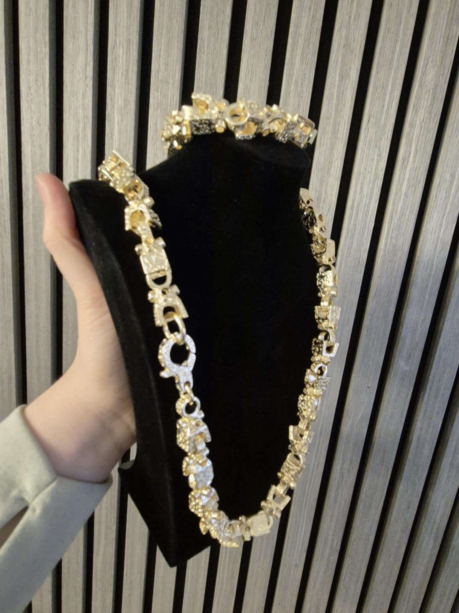 Discover the perfect blend of modern elegance and timeless design with this exquisite 12mm Brick Set, featuring a stunning necklace and matching bracelet. The intricate brick-style interlocking design showcases exceptional craftsmanship, while the premium gold-filled finish ensures long-lasting shine and durability. Perfect for any occasion, this set exudes understated luxury.