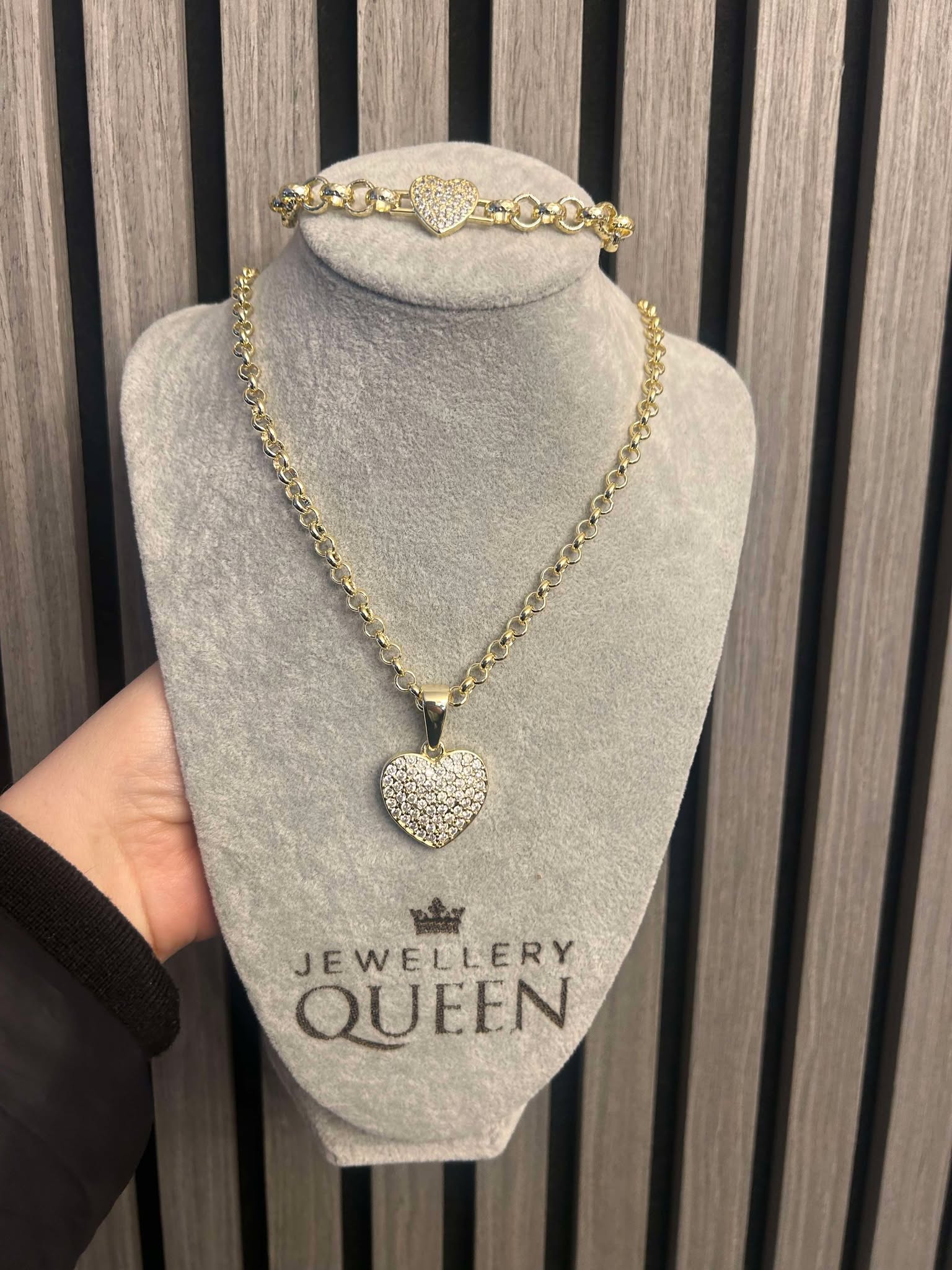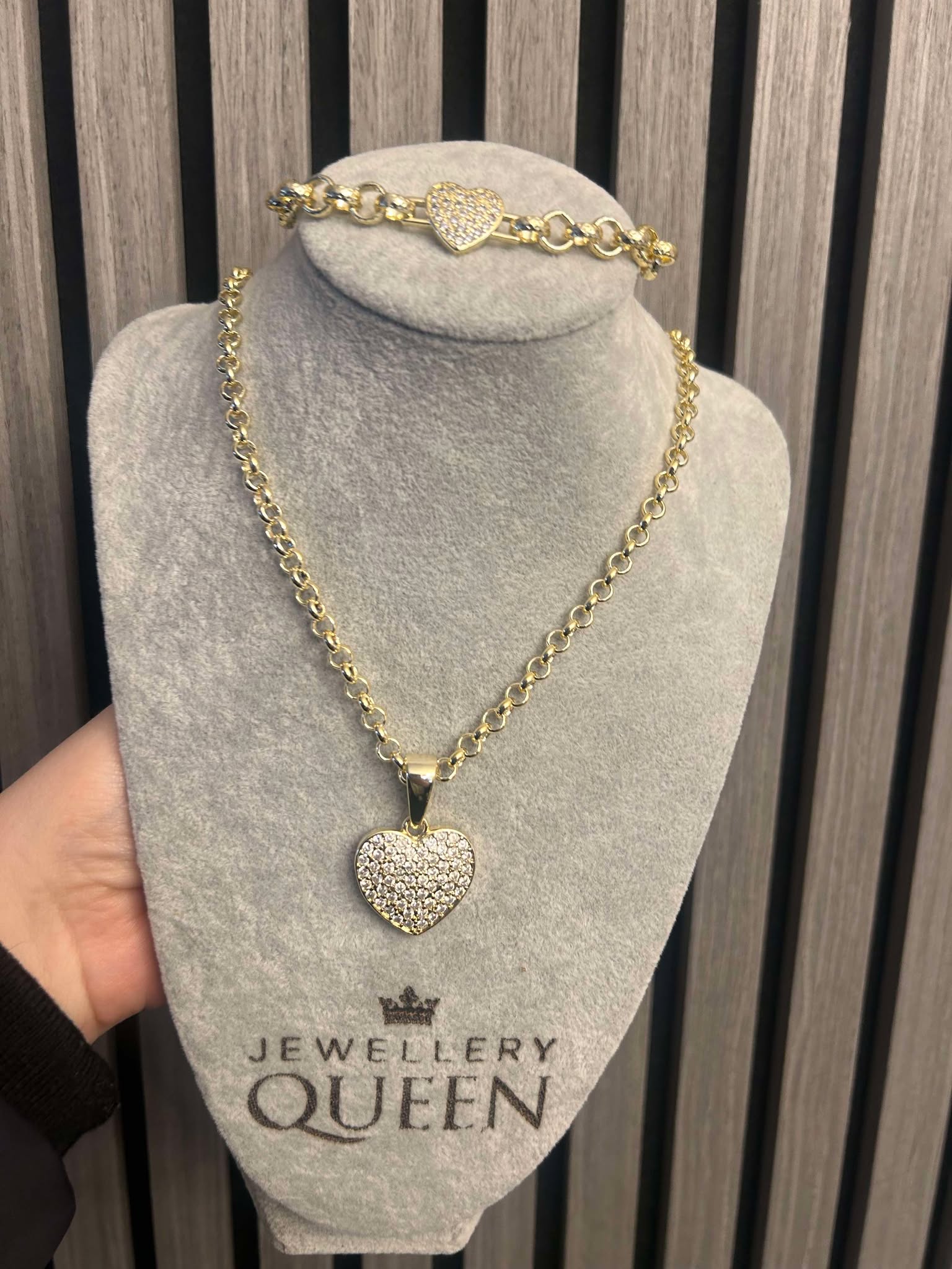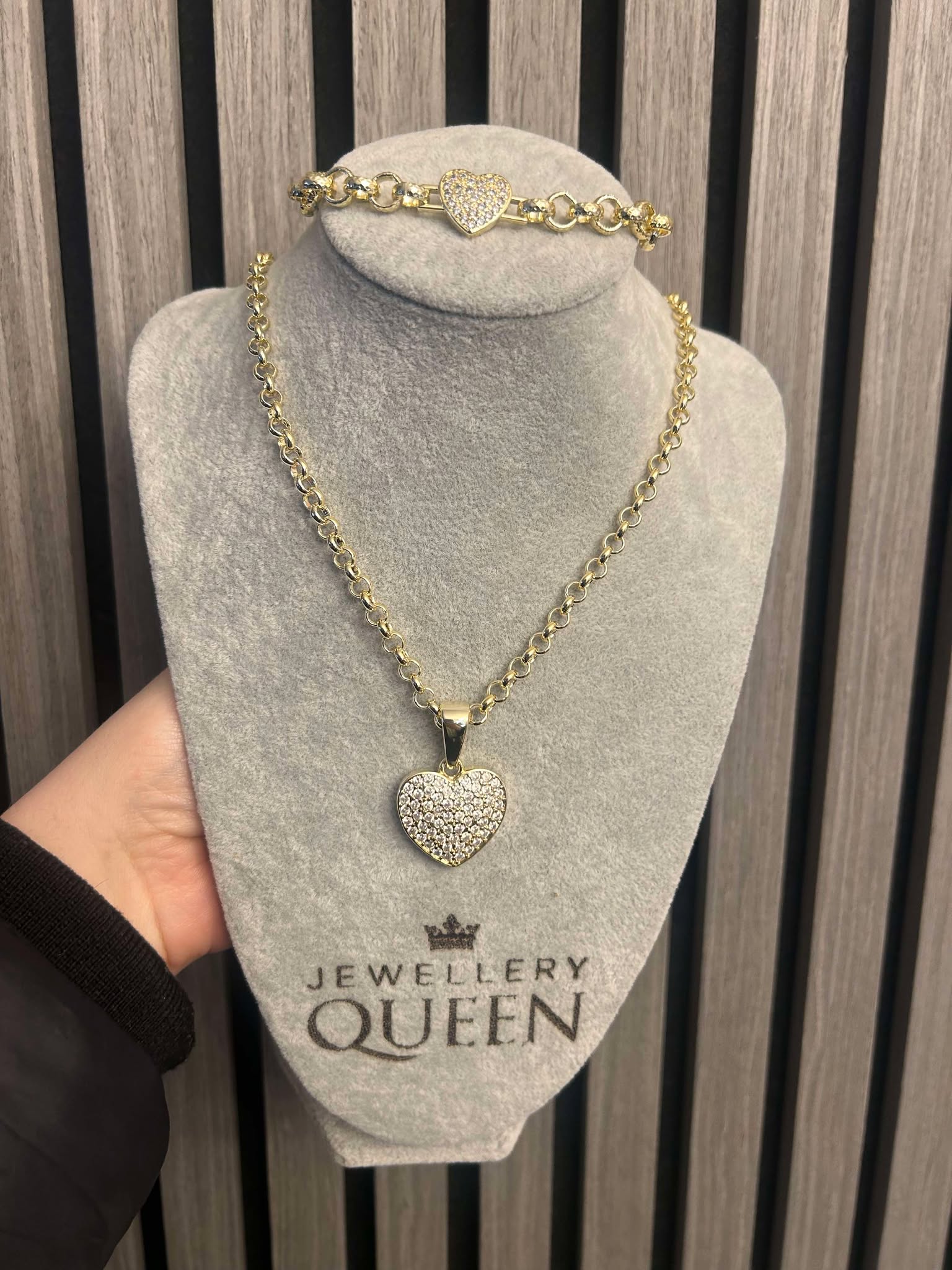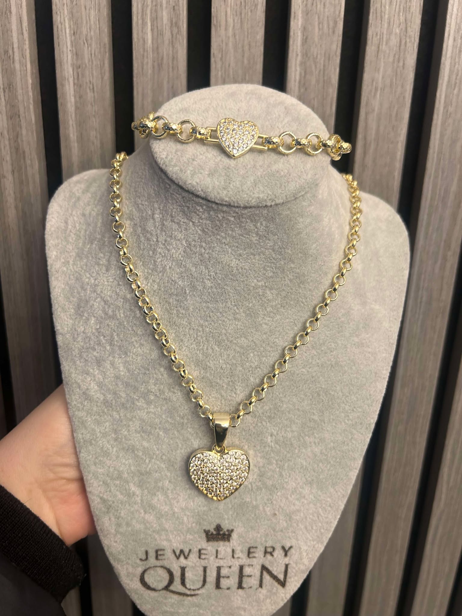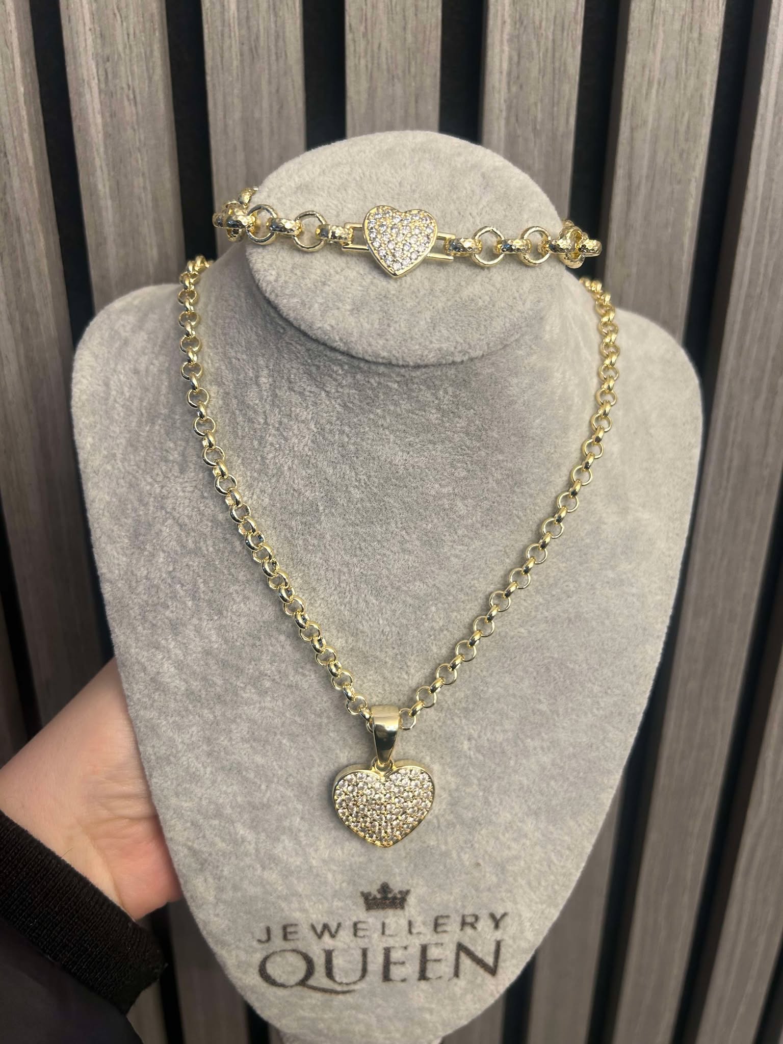 Add timeless elegance to your jewellery collection with the Gold-Filled Clear Stone Heart Belcher Set, featuring a radiant necklace and matching bracelet. Both pieces showcase a sparkling clear stone heart pendant paired with a classic belcher chain, crafted from premium gold-filled material for lasting shine and durability. The bracelet, designed to fit wrist sizes 7-8 inches, ensures comfort and sophistication, making this set perfect for any occasion.