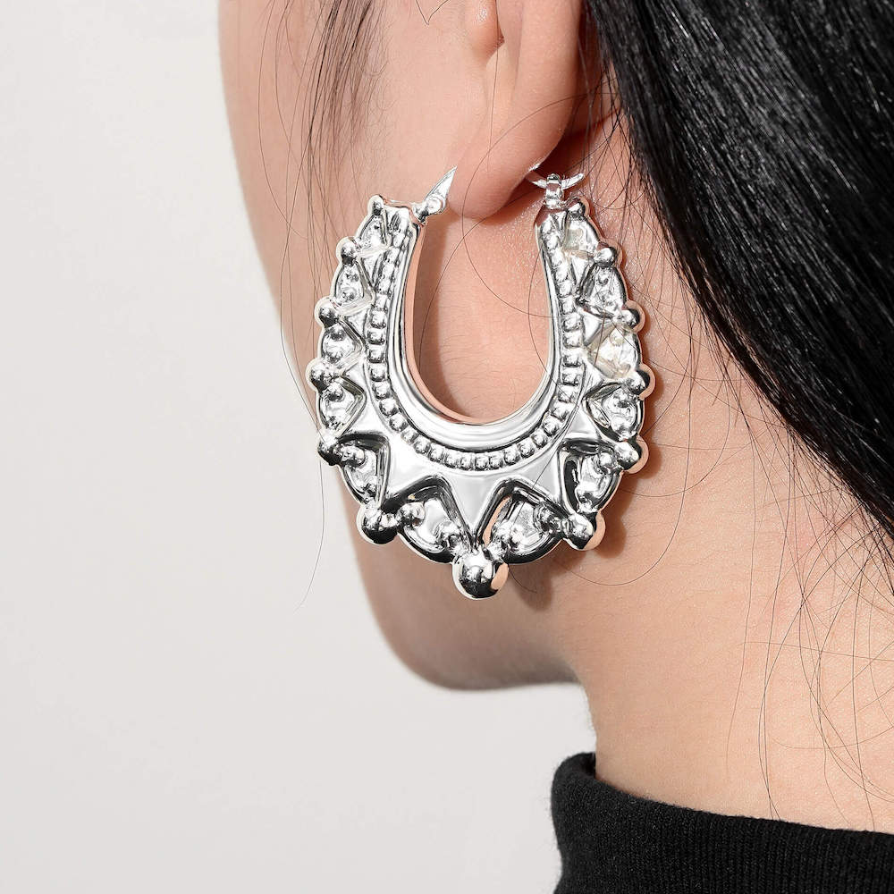Turn heads with these bold 48mm silver creole hoop earrings. Featuring intricate detailing and a striking design, these earrings are perfect for making a statement while adding a touch of elegance to any outfit.