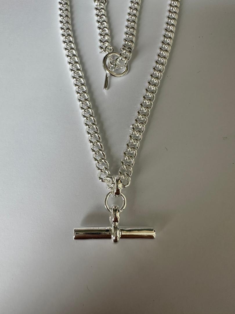 Elevate your style with the sleek and contemporary Premium Silver T-Bar Necklace. Featuring a bold chain paired with a minimalist T-Bar charm, this design exudes timeless elegance with a modern edge. Crafted from high-quality silver with a polished finish, it ensures long-lasting shine and durability, making it perfect for everyday wear or special occasions.