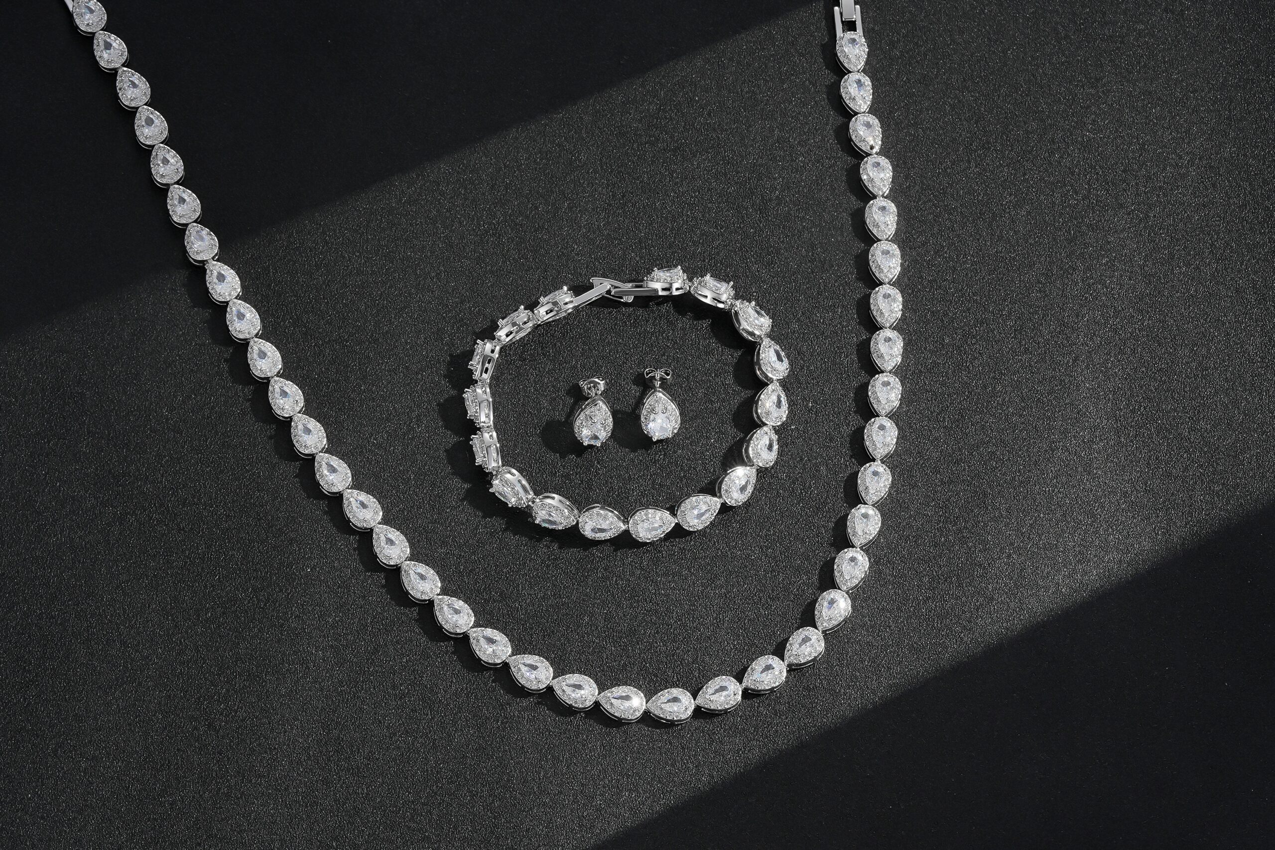- Complete set: necklace, bracelet, and earrings