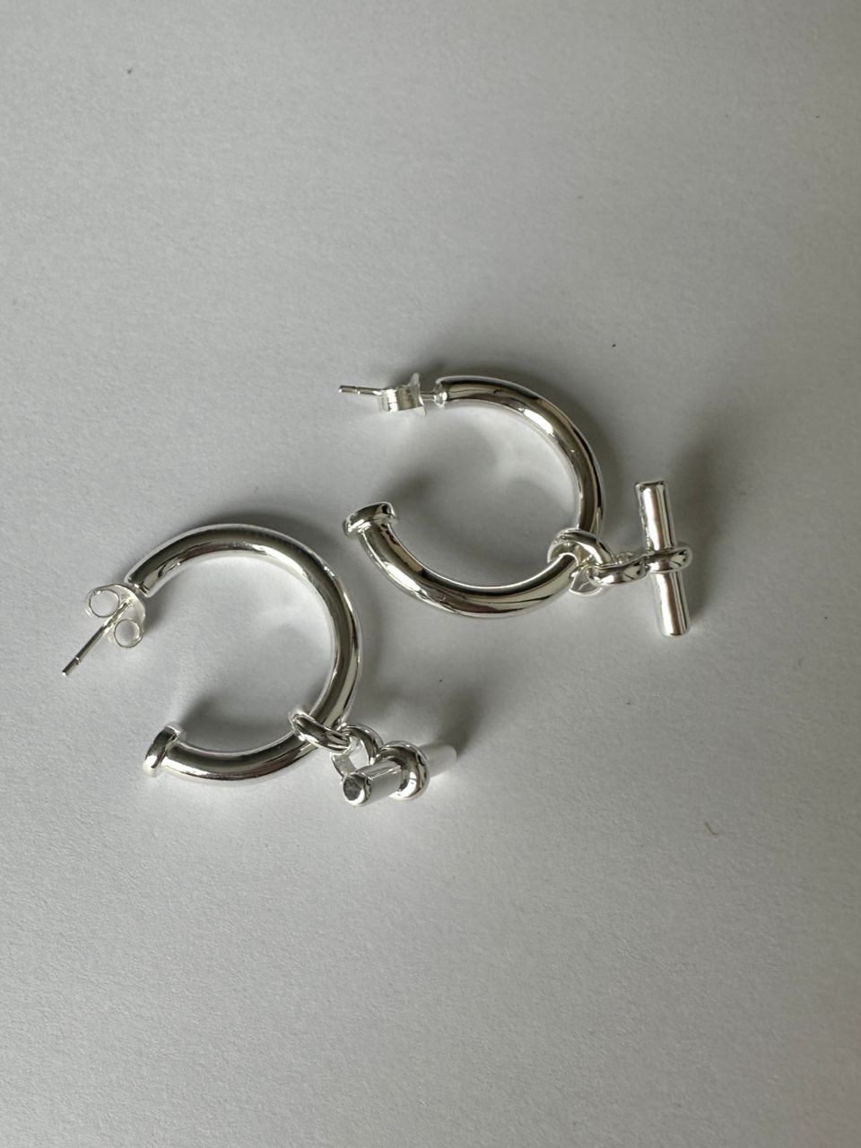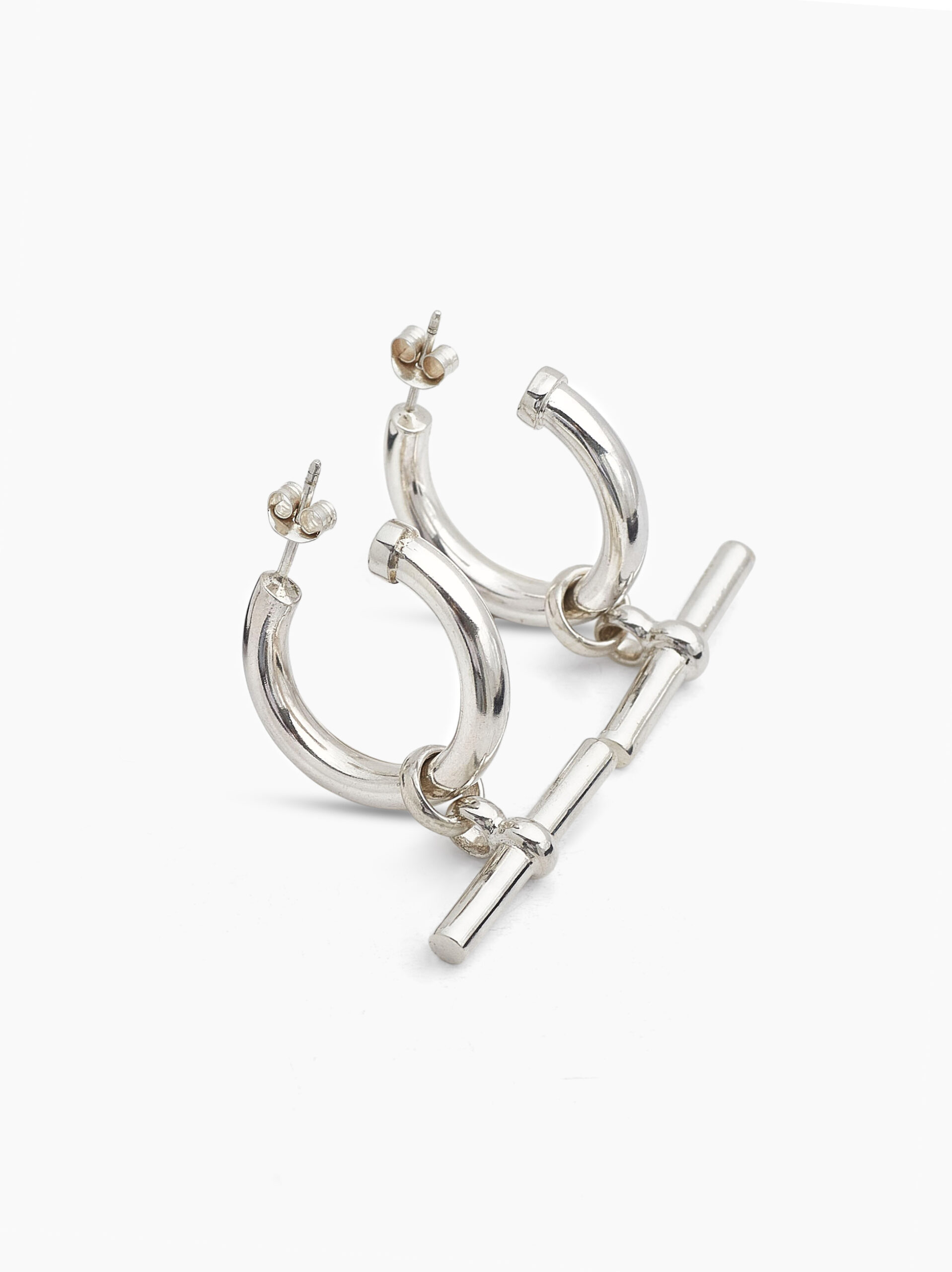 Elevate your jewellery collection with these modern T-Bar hoops in silver. Featuring a sleek hoop design complemented by a minimalist T-Bar charm, these earrings are the perfect blend of simplicity and elegance. Crafted from high-quality silver, they offer a polished finish and long-lasting durability, ideal for daily wear or special occasions.