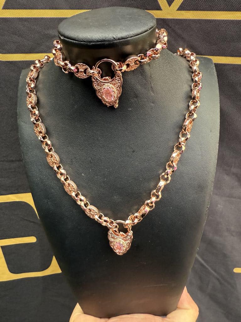 This Petite Rose Button Set includes a stunning necklace and bracelet, both featuring intricate button-style links in a luxurious rose gold finish. Accented with sparkling pink stones, this set is perfect for adding elegance and sophistication to your jewellery collection.