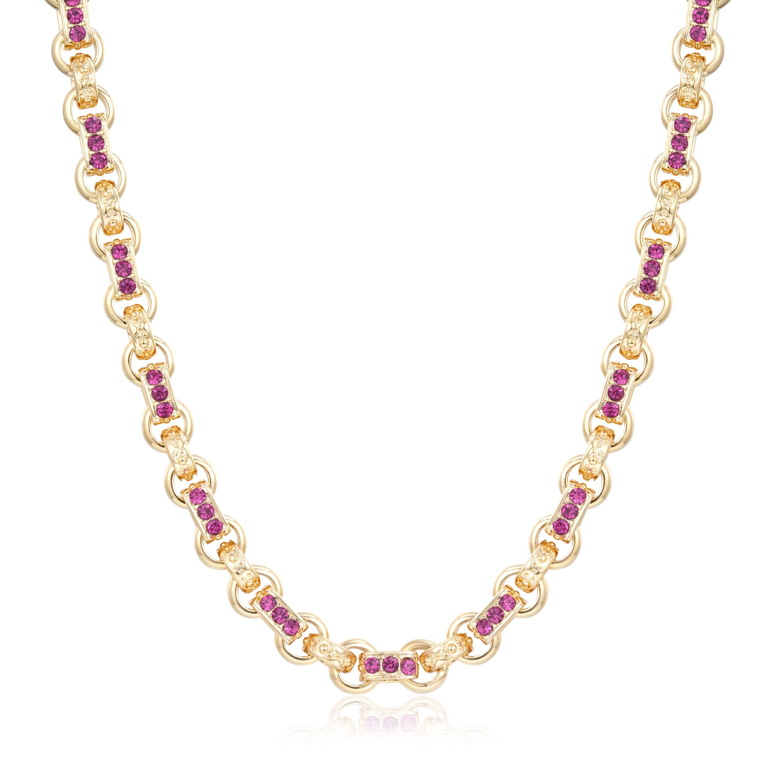 A striking gypsy-style necklace featuring bold pink stones and intricate detailing.