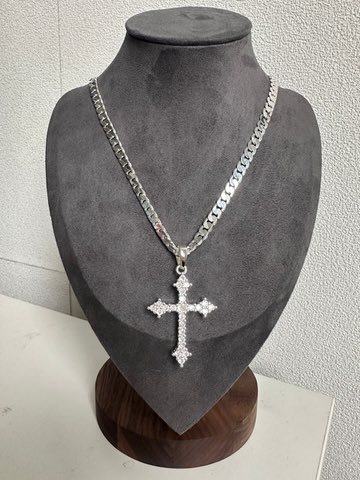 • Bold cross pendant with intricate detailing for a sophisticated look