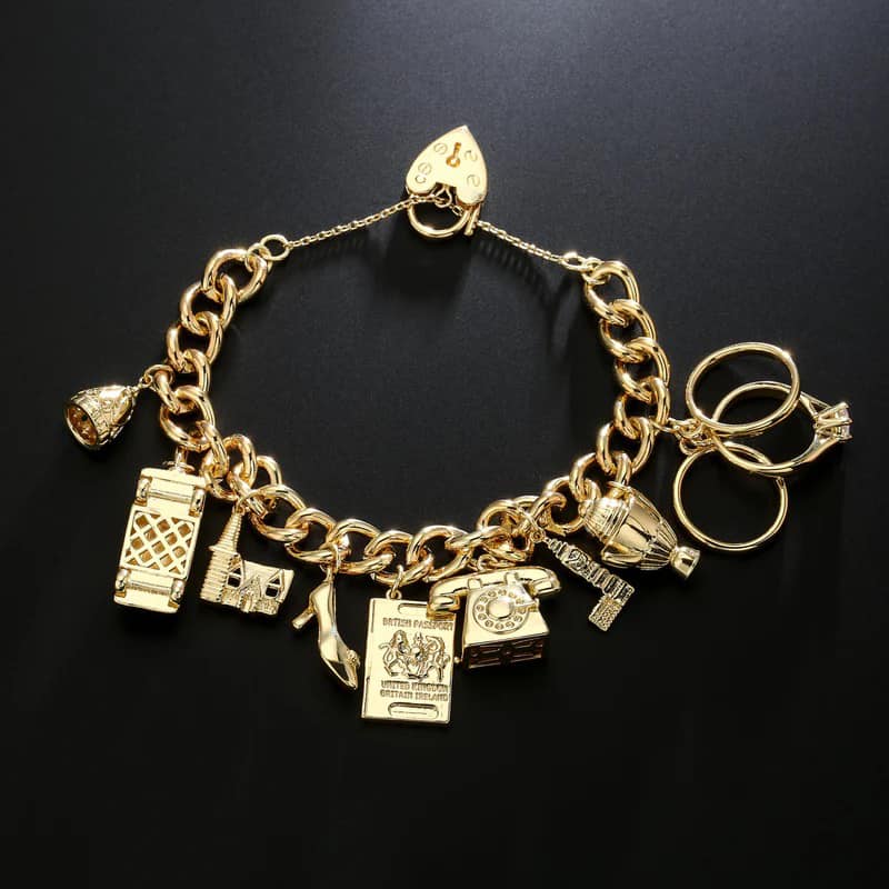 This Premium Gold-Filled Charm Bracelet is a playful yet elegant accessory, featuring a collection of intricately detailed charms. Designed to fit up to an 8-inch wrist, it combines luxury and personalisation, making it a standout piece for any jewellery collection.