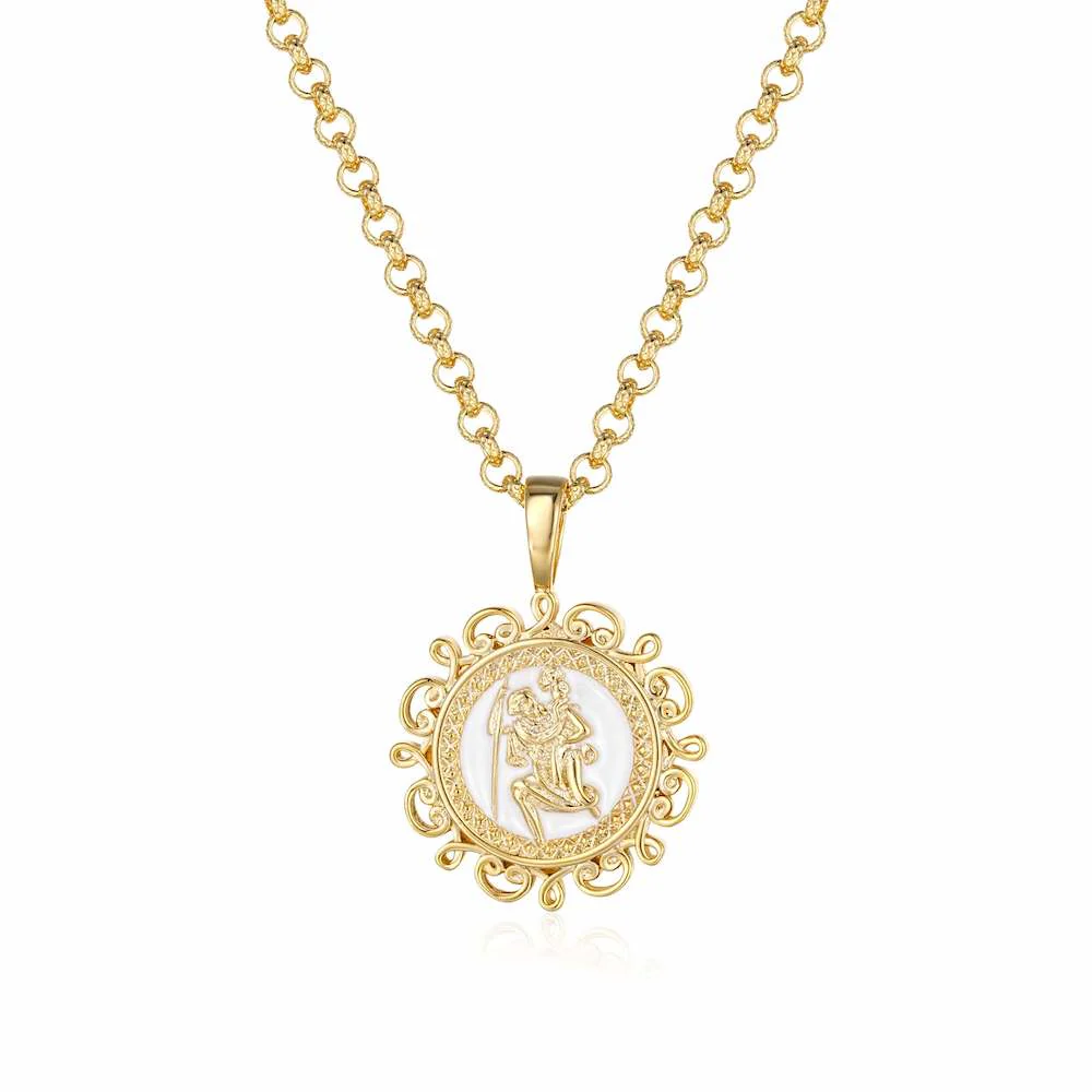 - Premium St Christopher pendant with intricate detailing and ornate frame