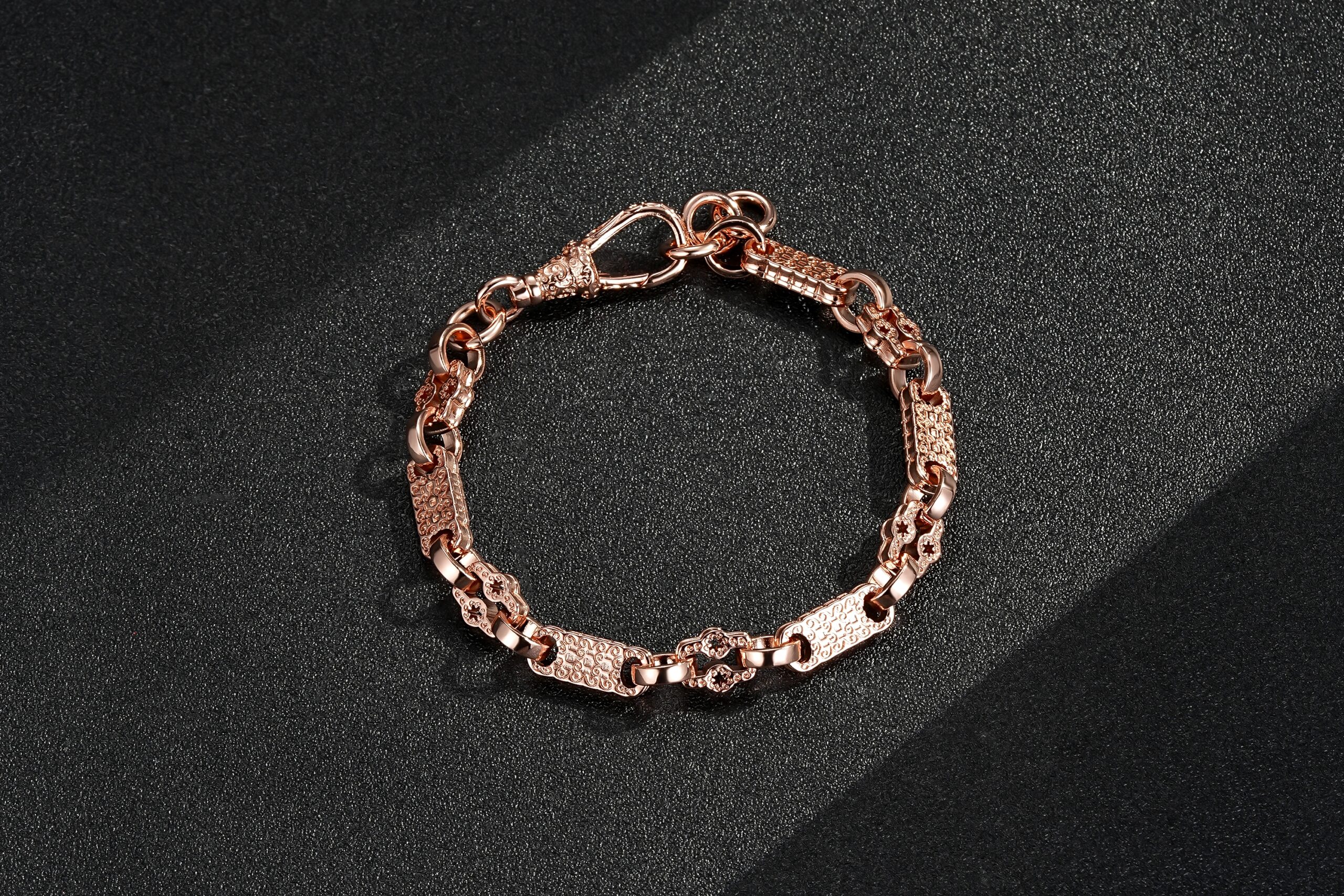 The intricate detailing of the stars and textured bars pairs beautifully with the soft, warm hue of rose gold, offering a unique and sophisticated look. Crafted with premium materials, this 7mm bracelet is perfect for daily wear or as a statement accessory for special occasions. Its timeless charm and durable finish make it a versatile and meaningful addition to any jewellery collection.