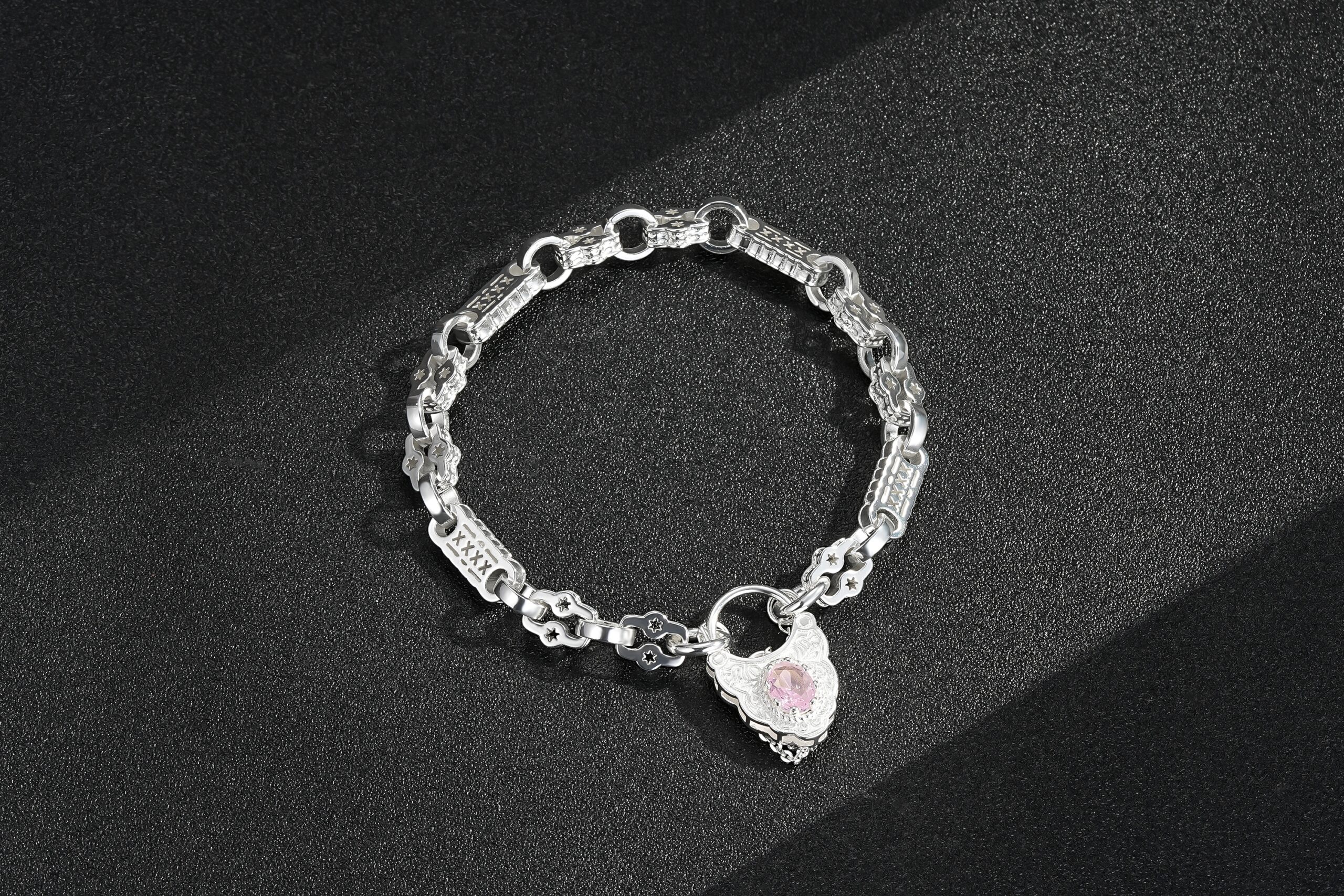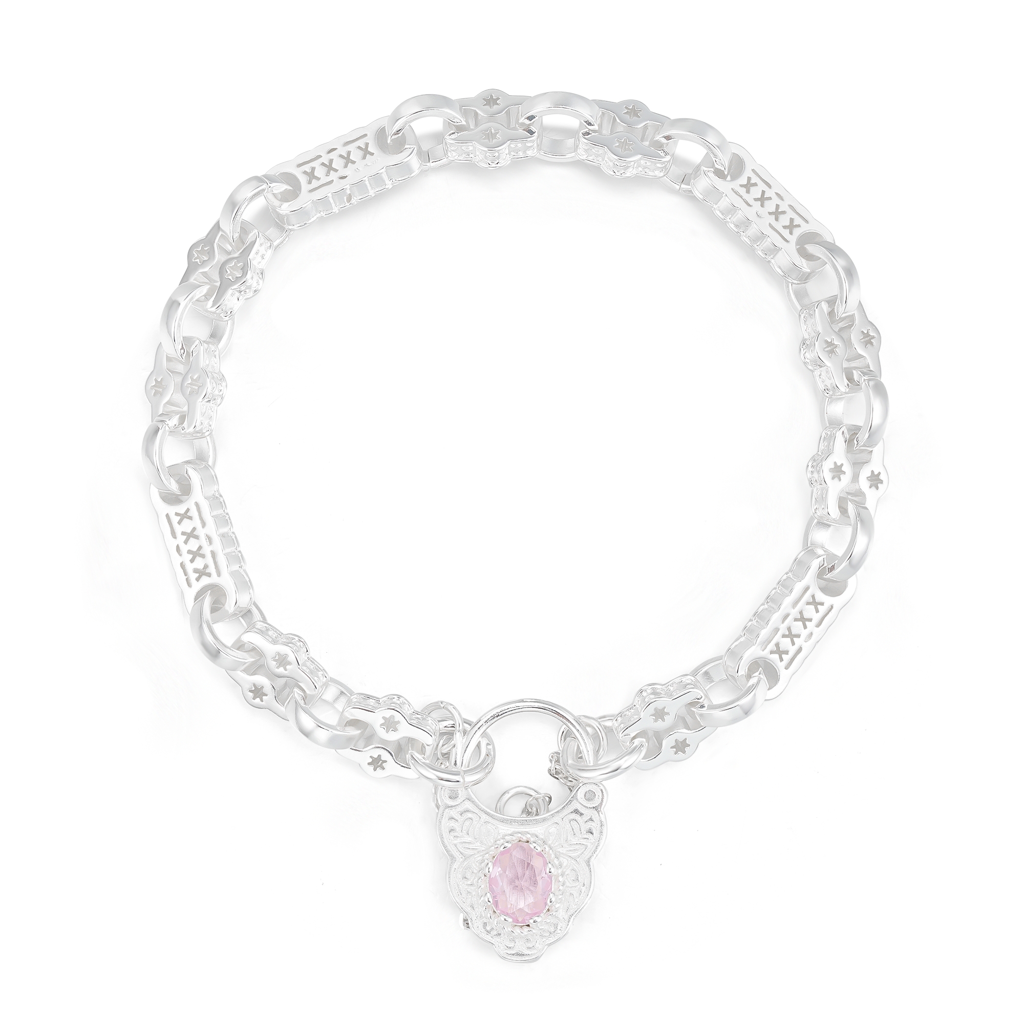 The intricate detailing of the stars and bars links enhances its unique aesthetic, while the pink lock adds a feminine and contemporary accent. Perfect for both everyday wear and special occasions, this bracelet is a versatile addition to any jewellery collection, offering a flawless blend of elegance and character.