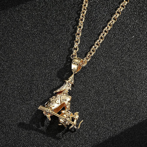 The intricate design of the witch, complete with magical accents, is finished in radiant gold for a luxurious touch. Whether worn daily or for special occasions, this necklace adds a spellbinding element to your style.