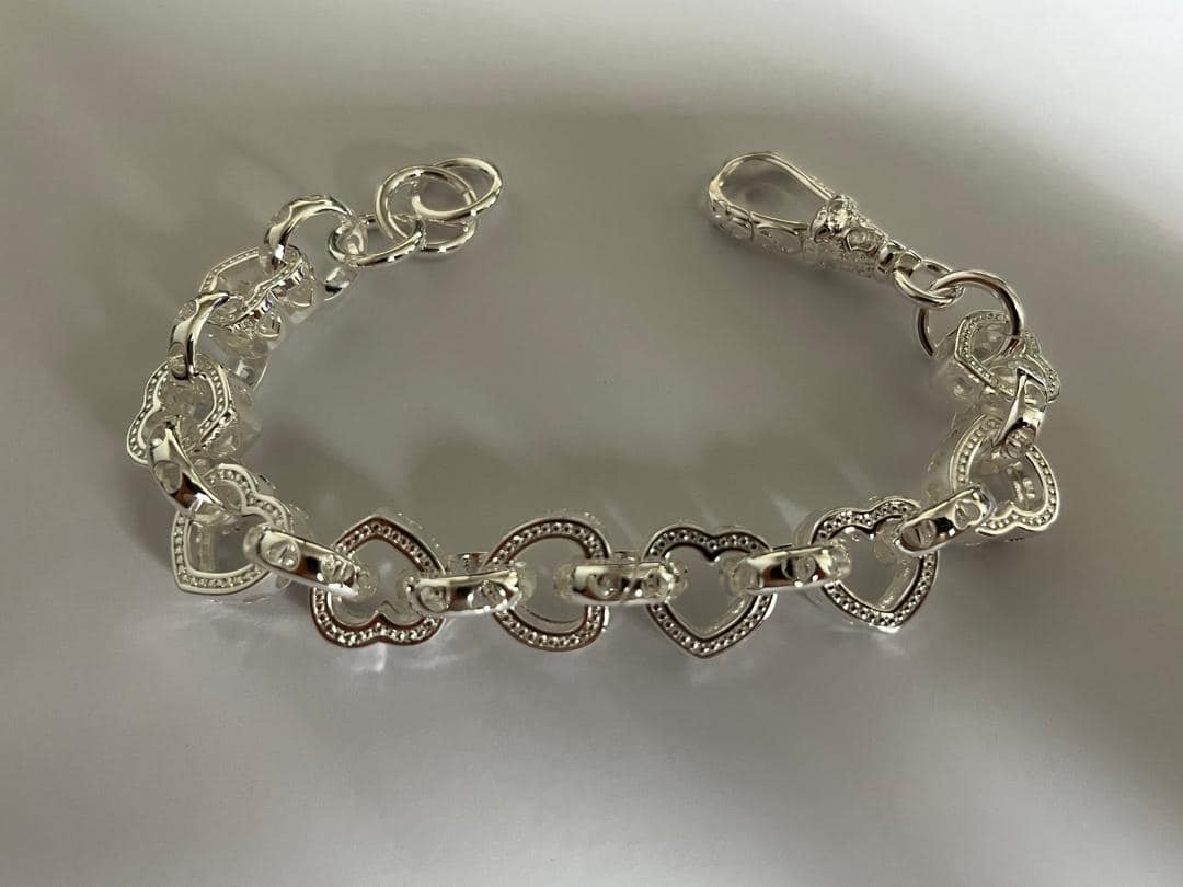 This exquisite 8-inch silver heart belcher bracelet is beautifully crafted with rhodium-plated links, giving it a lustrous and durable finish. Each link is elegantly shaped into a heart, adding a touch of romance and charm to the design. The bracelet is secured with a featured Albert clasp, providing both style and ease of wear. Perfect as a gift or a timeless addition to your own jewellery collection, this bracelet combines sophistication with a delicate, romantic touch.
