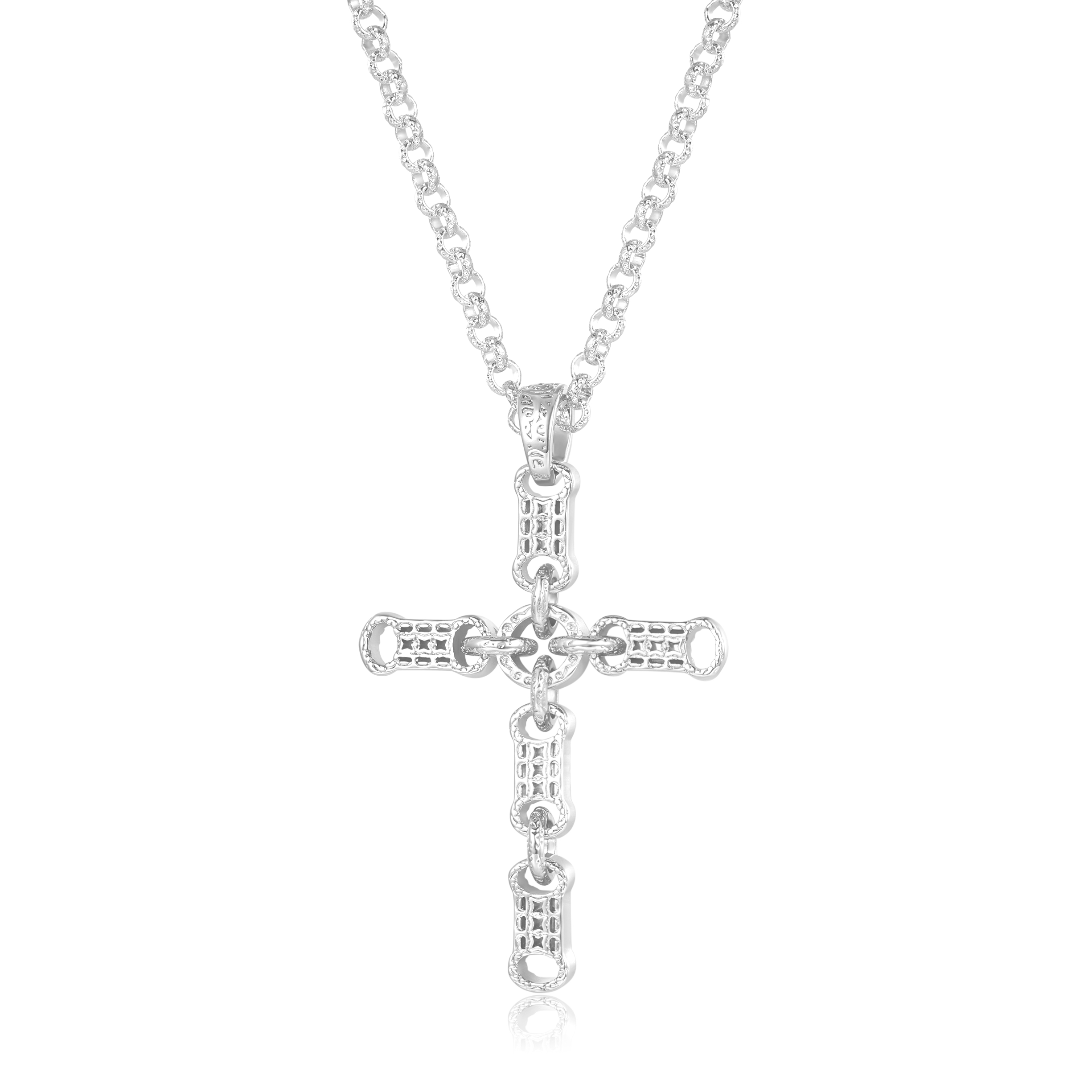 no This premium rhodium-plated necklace set features an intricately crafted stars and bars cross pendant, perfectly paired with a durable 4mm belcher chain.