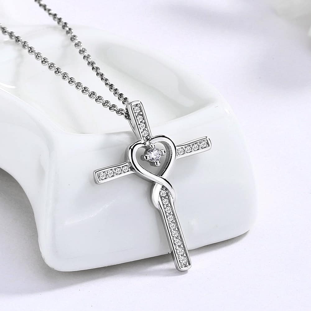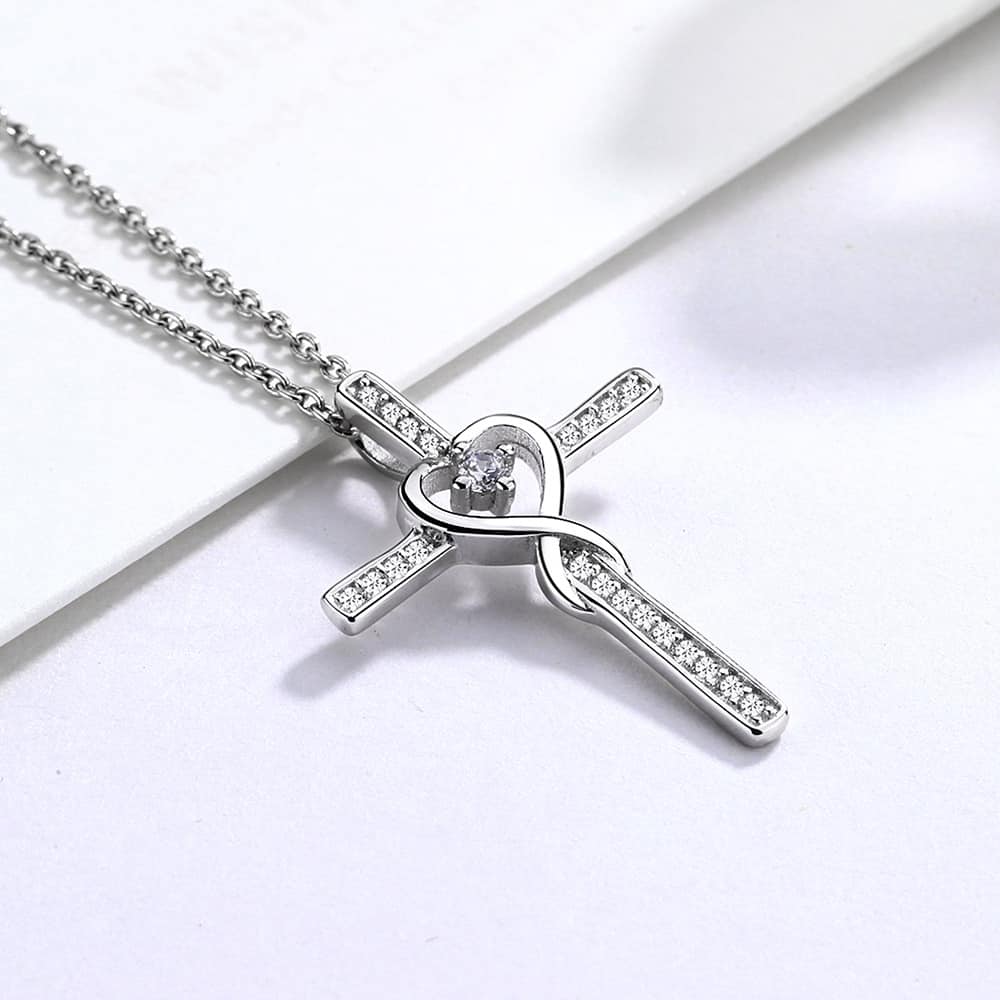 This elegant sterling silver necklace combines the symbol of faith with the timeless infinity motif, representing everlasting love and devotion. The cross is delicately intertwined with an infinity loop, enhanced by sparkling stones that add a touch of brilliance. Perfect for daily wear or special occasions, this necklace is both meaningful and stylish, making it a versatile addition to any jewellery collection.