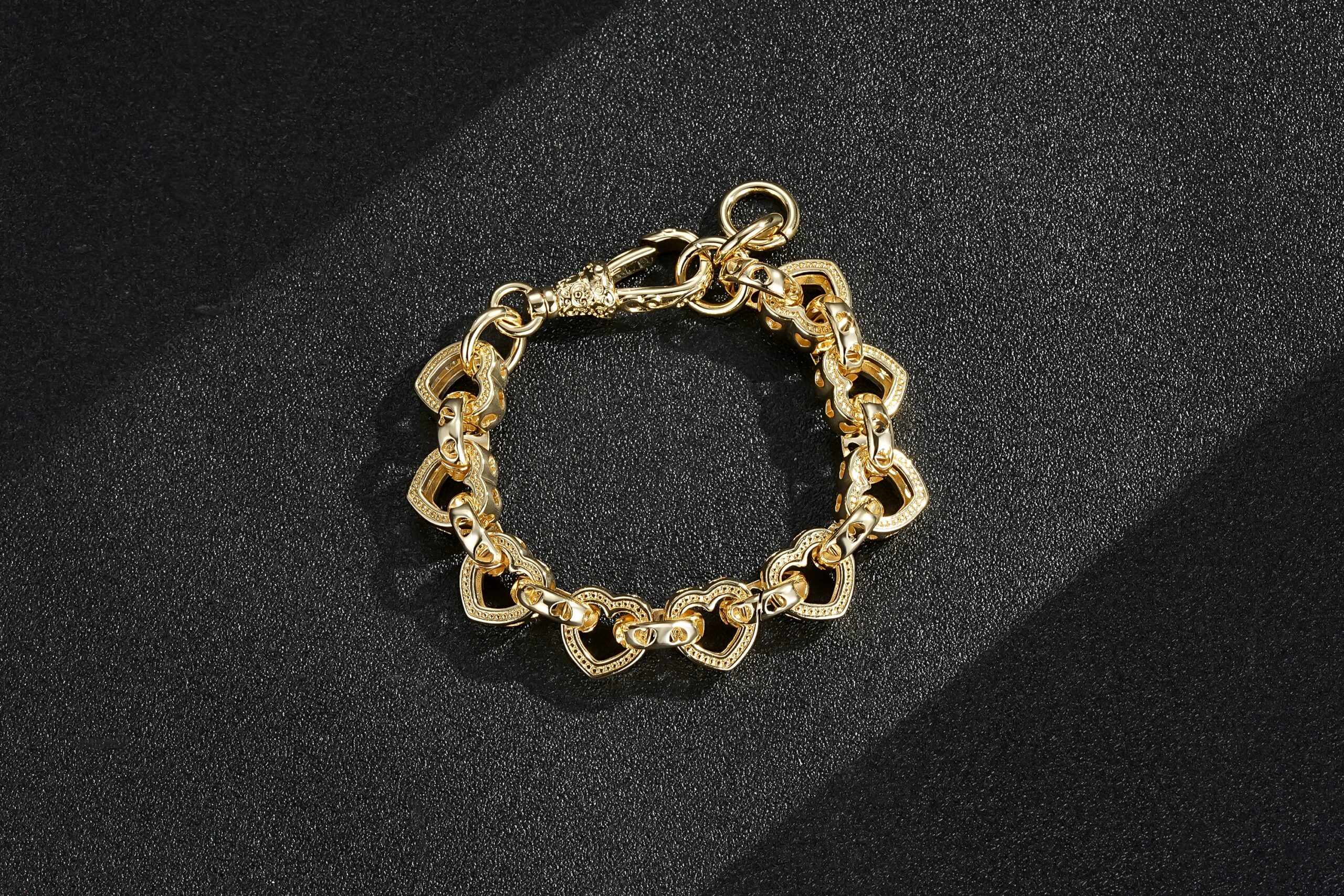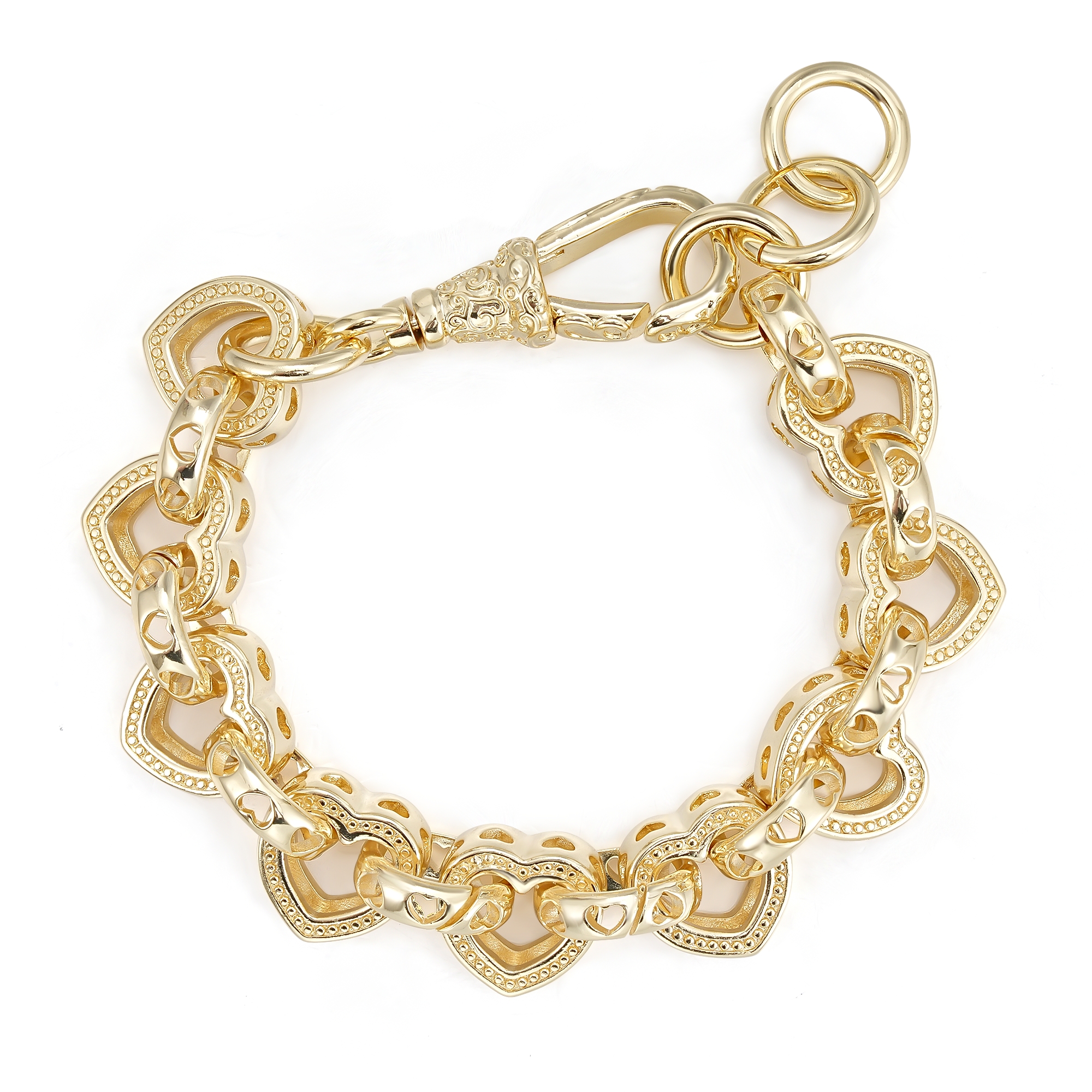 This gorgeous 8-inch premium heart belcher bracelet is designed to captivate with its intricate heart details on each link, adding a touch of elegance and sophistication. The delicate craftsmanship of the heart-shaped links creates a graceful and eye-catching accessory that sits beautifully on the wrist. Perfect for both everyday wear and special occasions, this bracelet is an ideal choice for those who appreciate timeless and romantic jewellery.