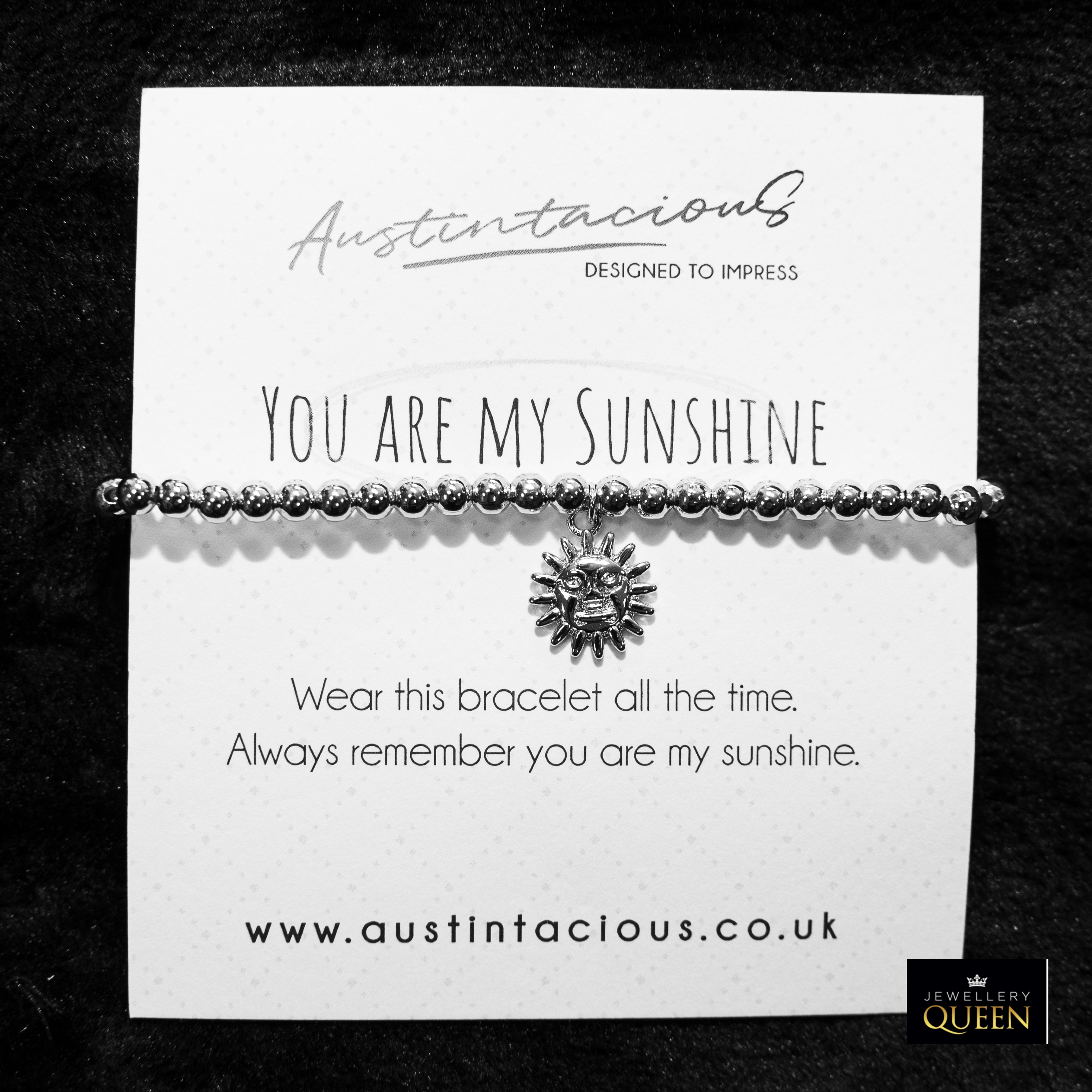 This charming beaded bracelet comes with a beautifully designed card featuring the heartfelt message, “You Are My Sunshine.” The bracelet, adorned with delicate silver-toned beads, is finished with a radiant sun charm, symbolizing warmth and positivity. It’s a perfect token of love and appreciation, designed to be worn daily as a reminder of a special connection. Packaged with a sentimental card, this bracelet makes an ideal gift for loved ones who bring light into your life.