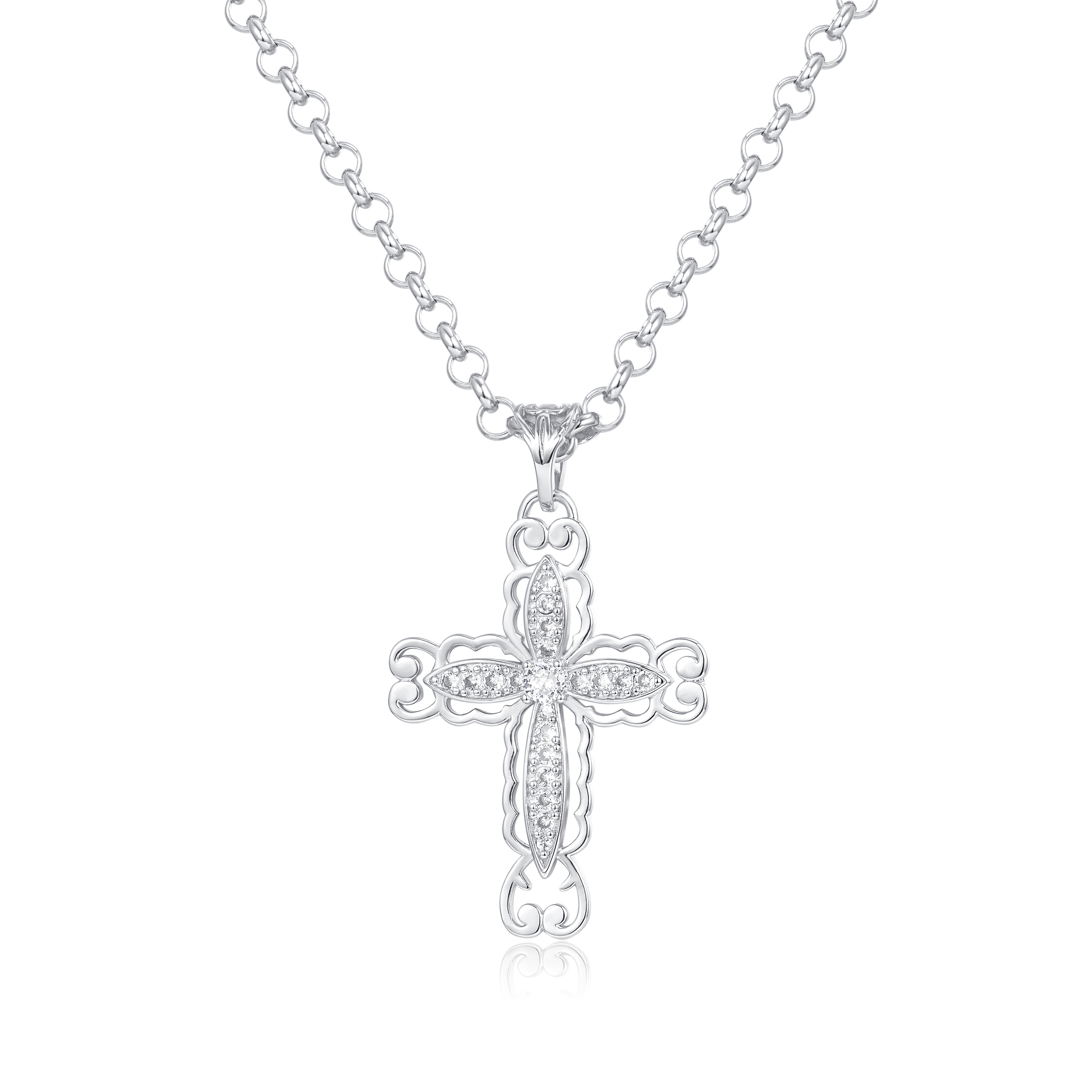 Premium Cross Necklace with 5mm belcher – Rhodium Plated