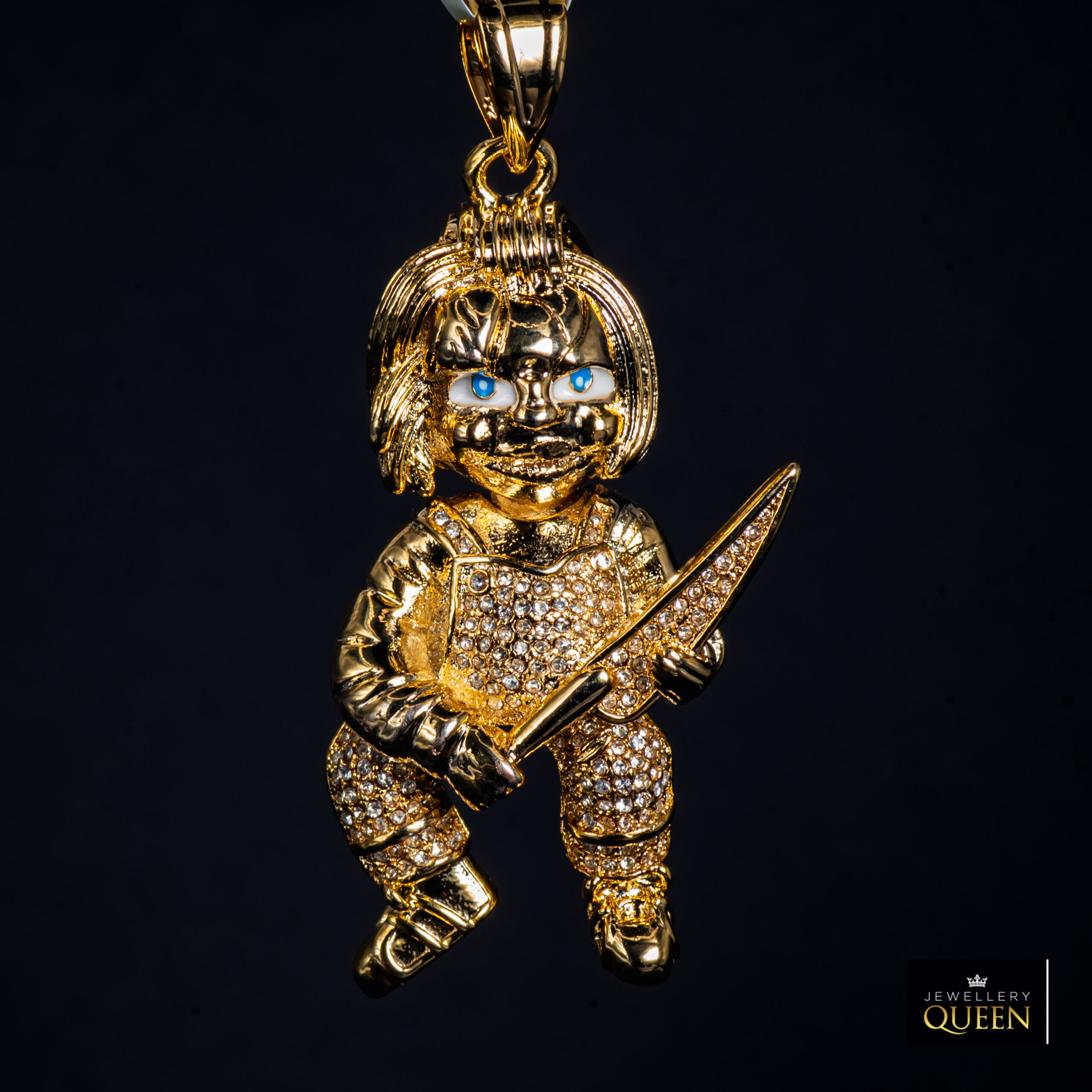 Be the first to review “Chucky Horror Necklace on 8mm Gold Chain”