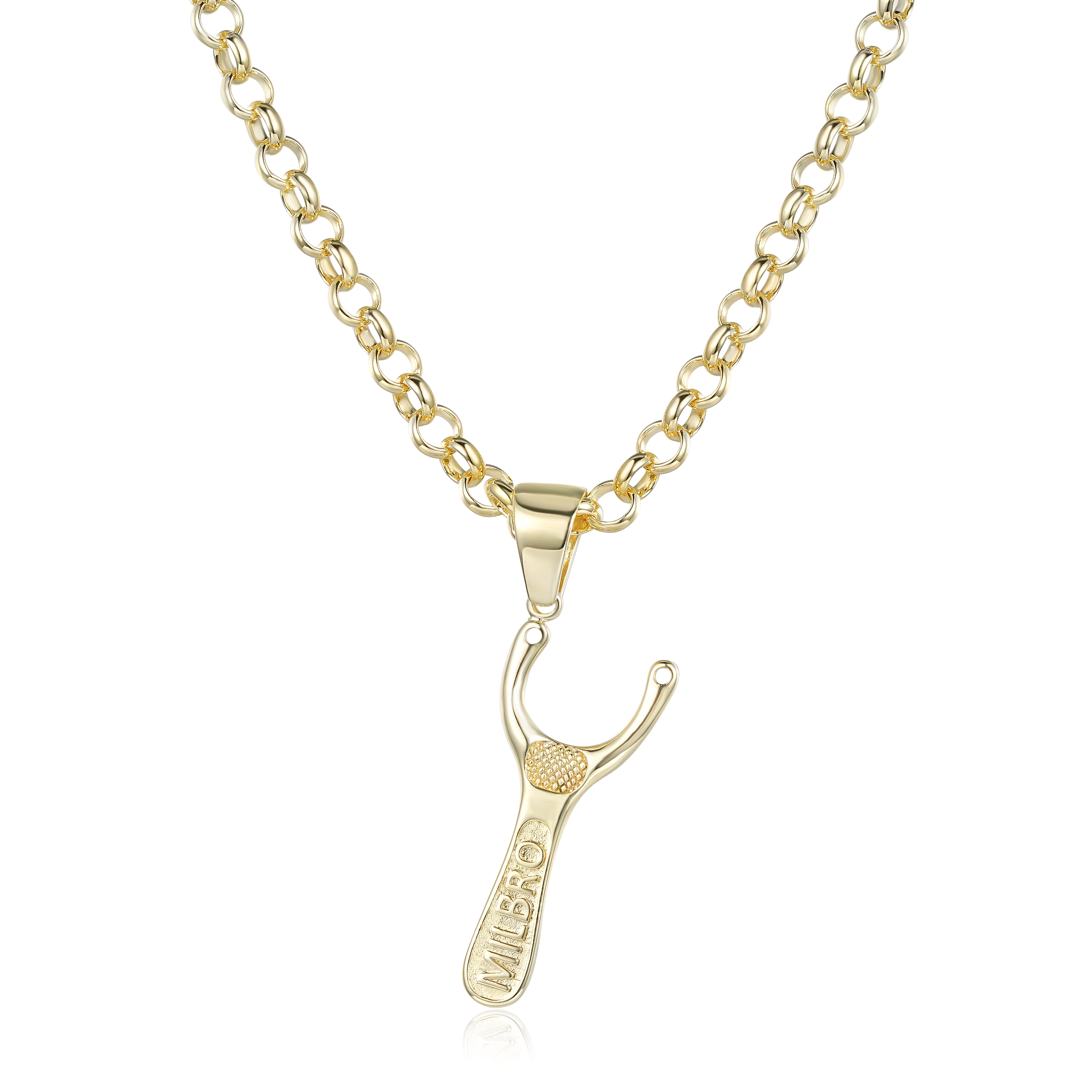 Stand out with this gold-filled Milbro Premium Catapult Pendant & Chain, a striking combination of unique design and high-quality craftsmanship. The intricately detailed catapult pendant is paired with a durable chain, offering lasting shine and a bold, stylish look perfect for everyday wear or as a distinctive gift.