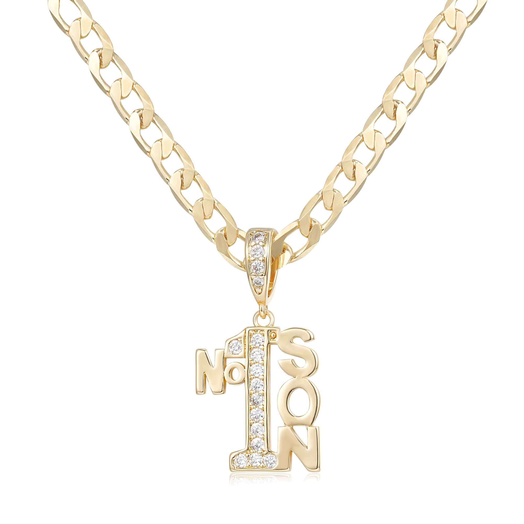 Show your appreciation with this Number 1 Son Premium Gold-Filled Necklace, featuring a bold pendant adorned with sparkling stones. The durable gold-filled chain adds a touch of luxury, making it a meaningful and stylish gift for a cherished son.